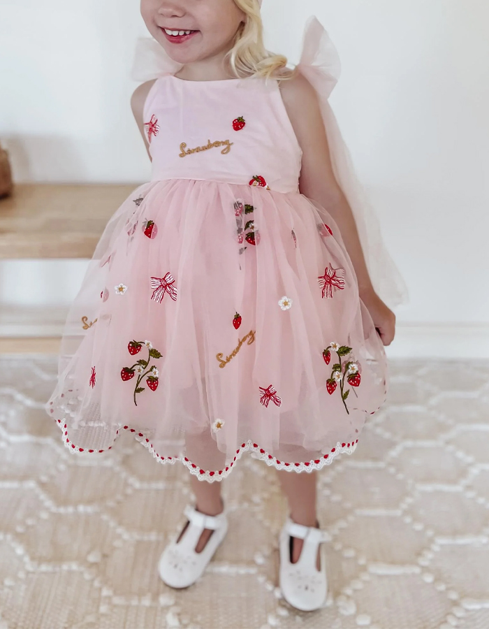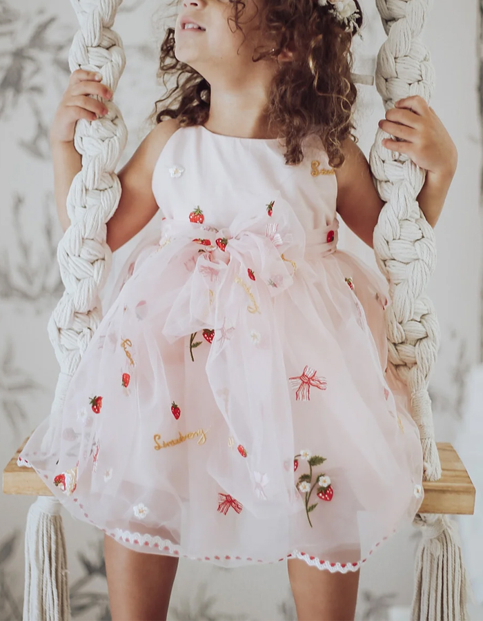 Sweet Pink Strawberry - Embroidered Flower Girl Dress