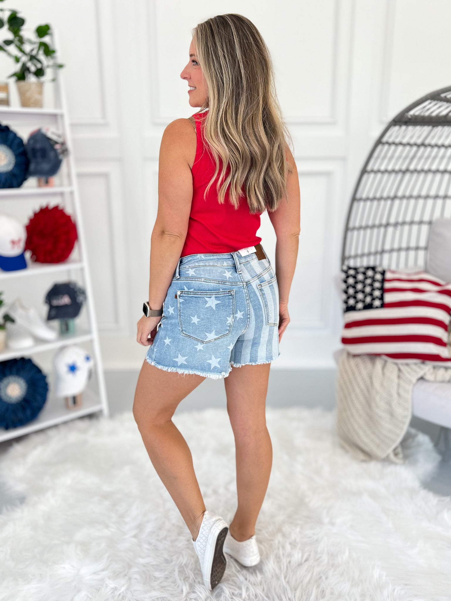 Faded Spirit - Judy Blue Stars & Stripes Frayed Hem Shorts - Final Sale