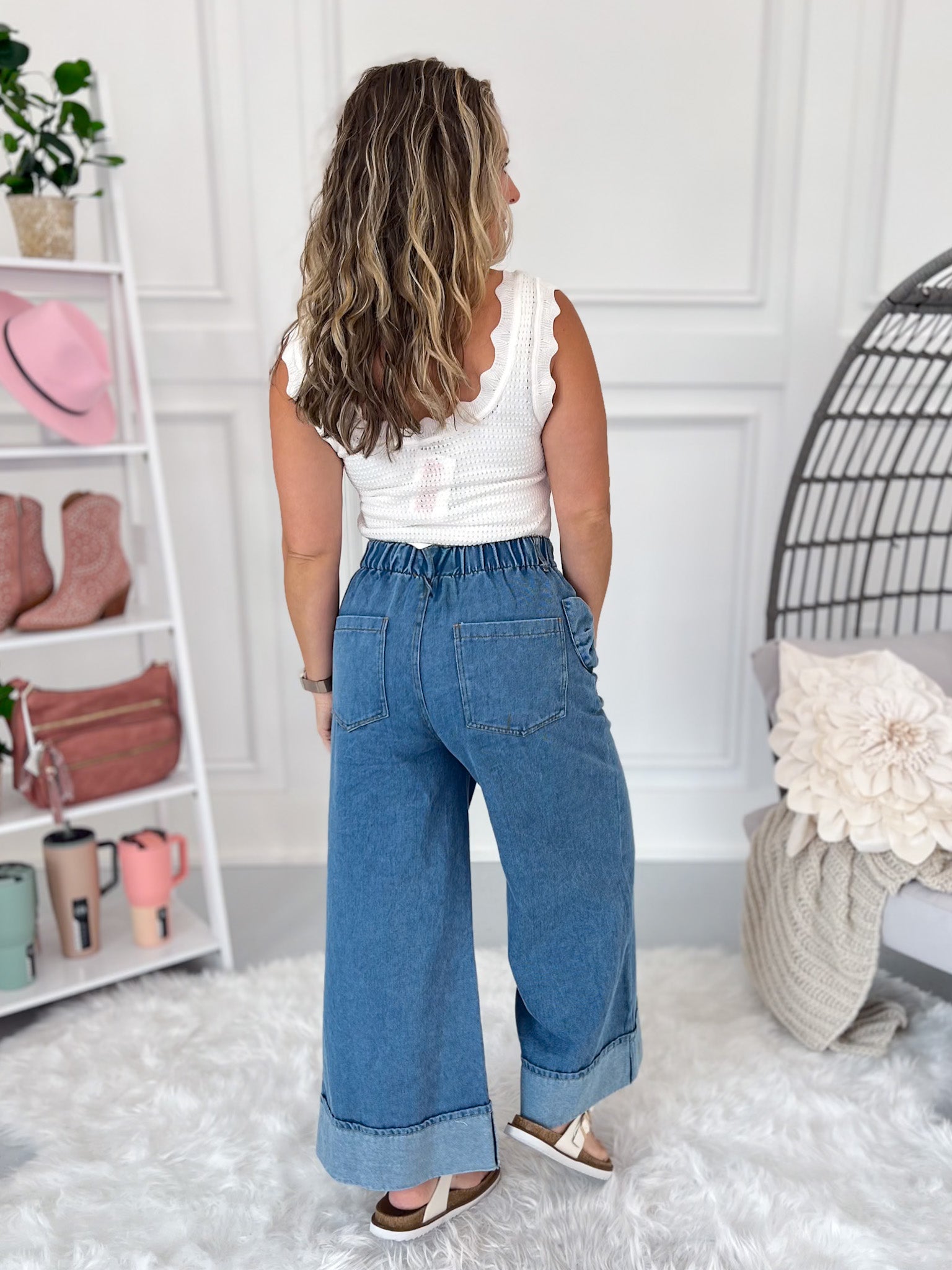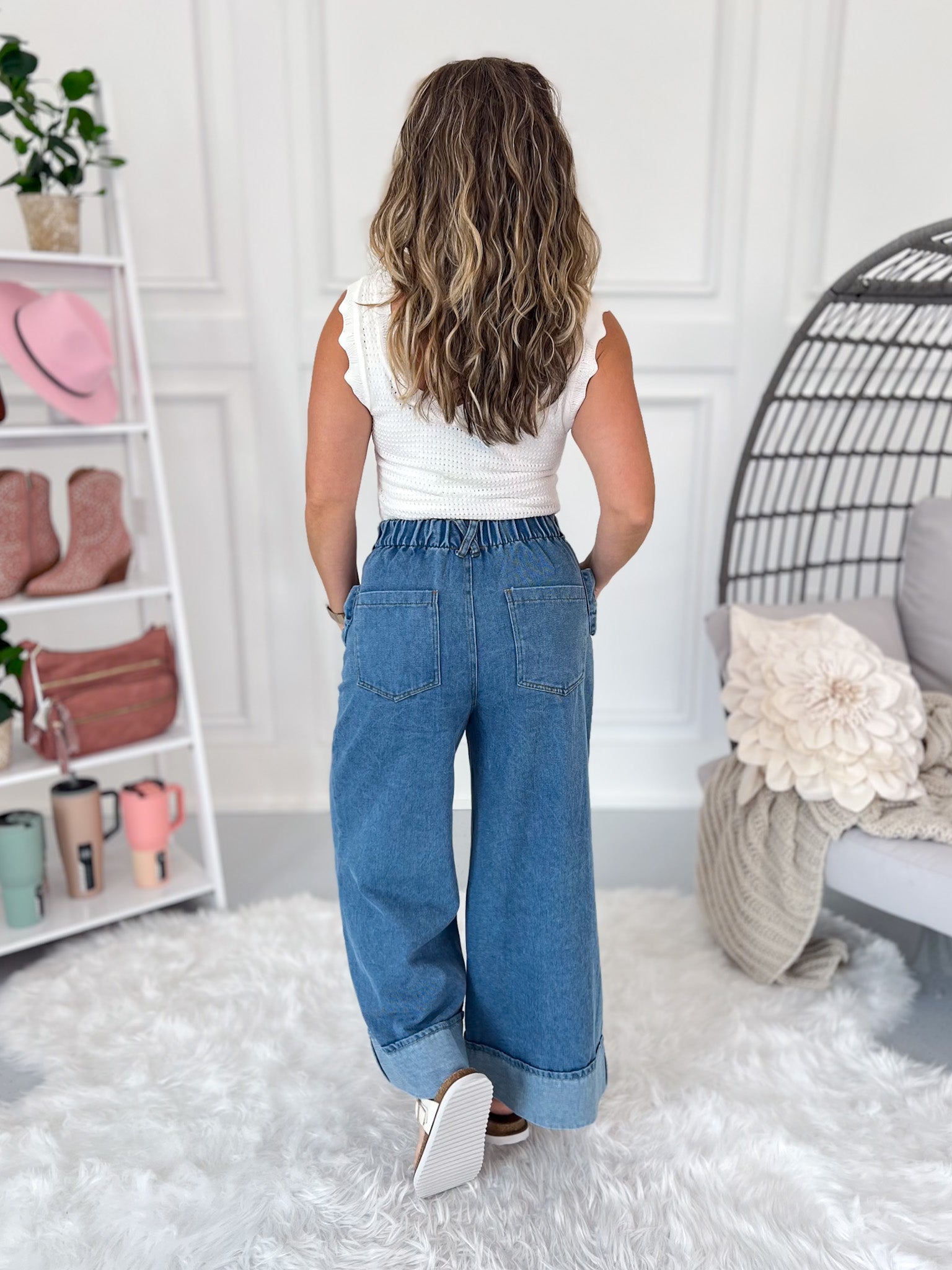 - Boho Wide Leg Fit: Hugs the hip and butt with a roomy and relaxed fit leg