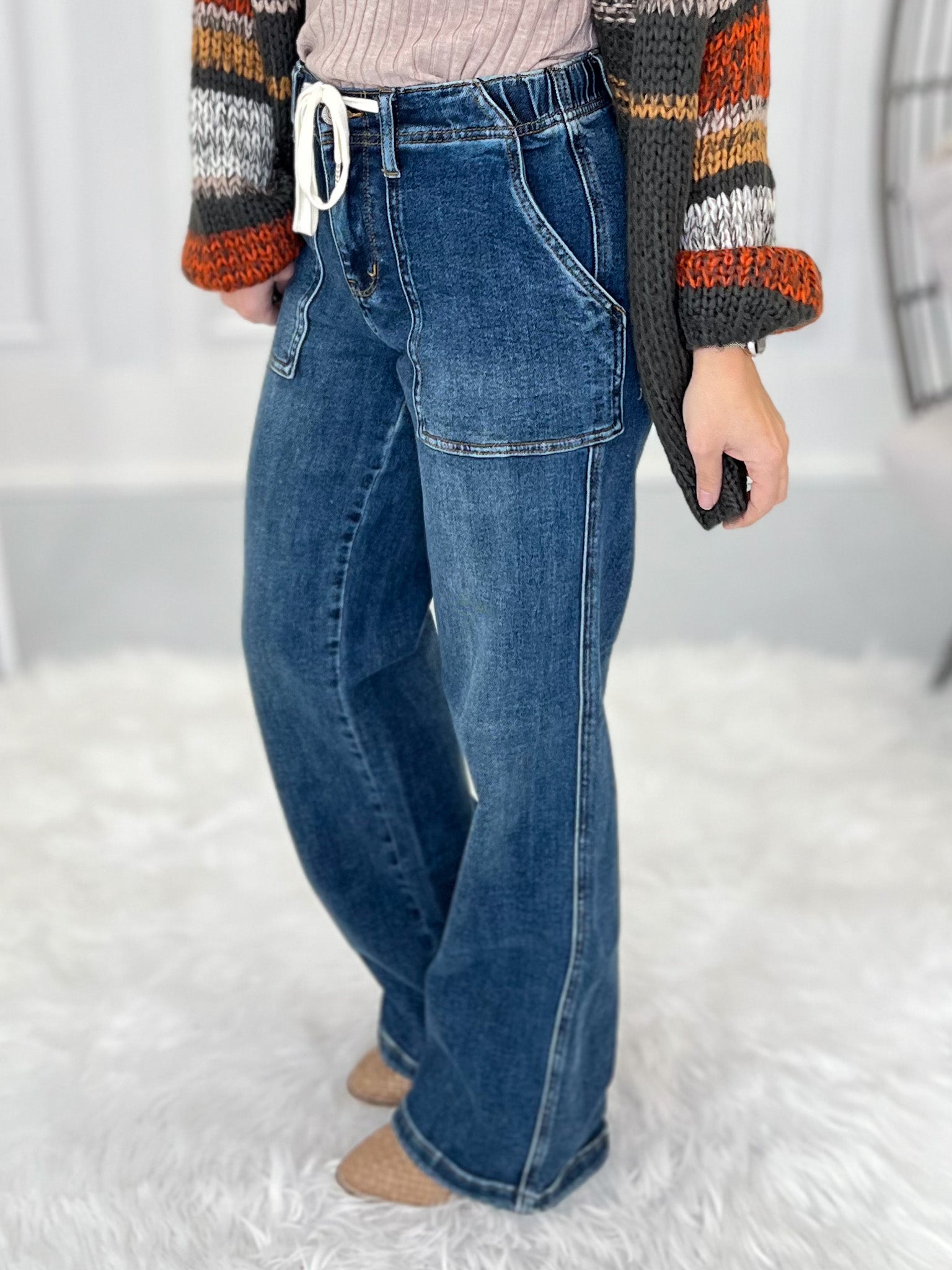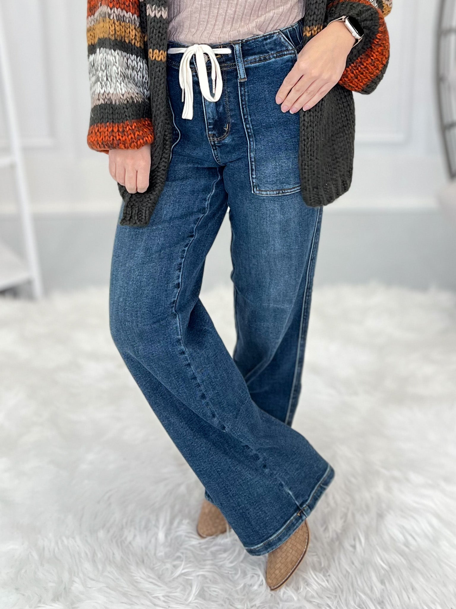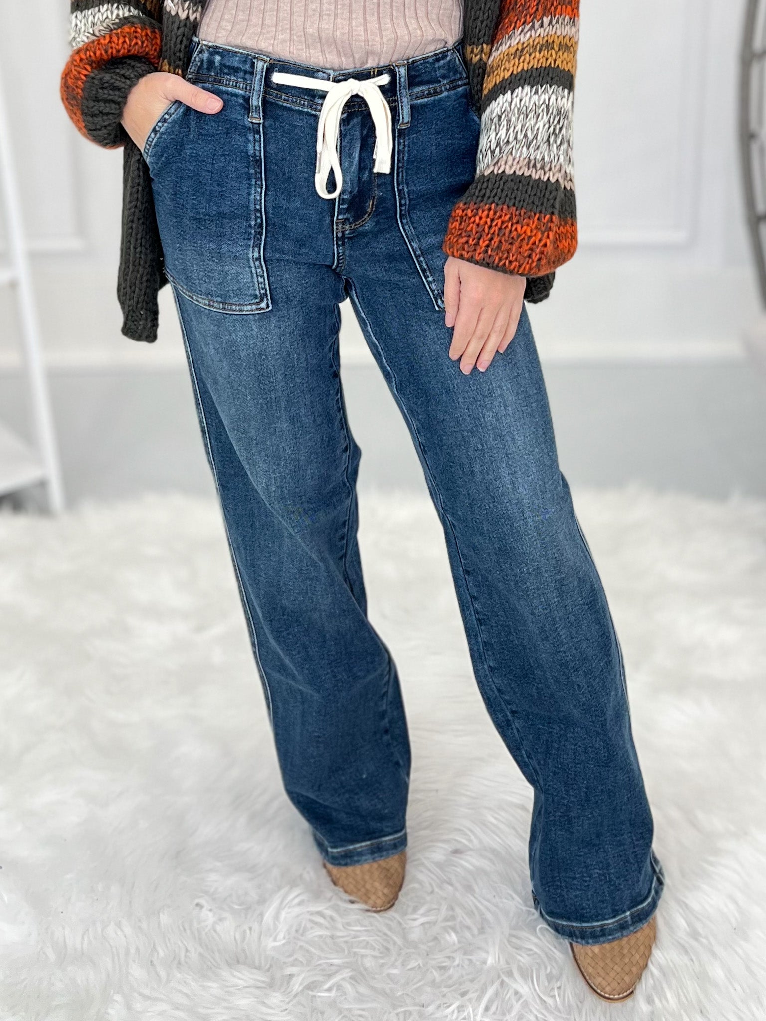 From a casual hoodie and sneakers, to a dressy ankle boot and sweater - these drawstring waist, Judy Blue wide legs can take on any occasion with ease. The chic wide leg with the more casual waist and front pockets is truly the perfect combo, making these our top 5 favorite Judy Blue, ever!