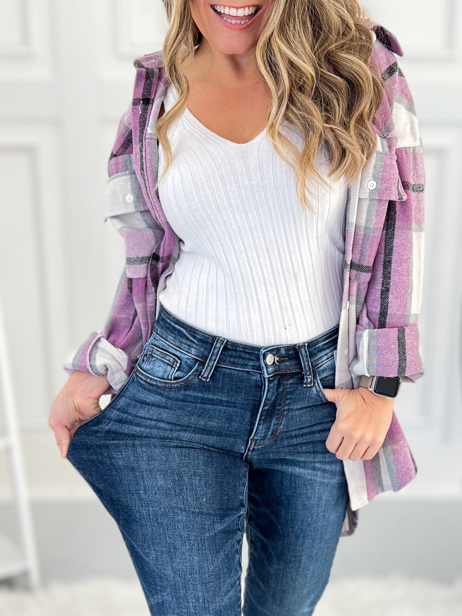 Literally anything goes with these jeans, and that is why we love them so much! Pair with a blazer and heels for the office, a body suit and boots for a date night, or your favorite team hoodie for the ball game! They are so comfortable and effortless with a vibe you can rock 7 days a week, year-round!