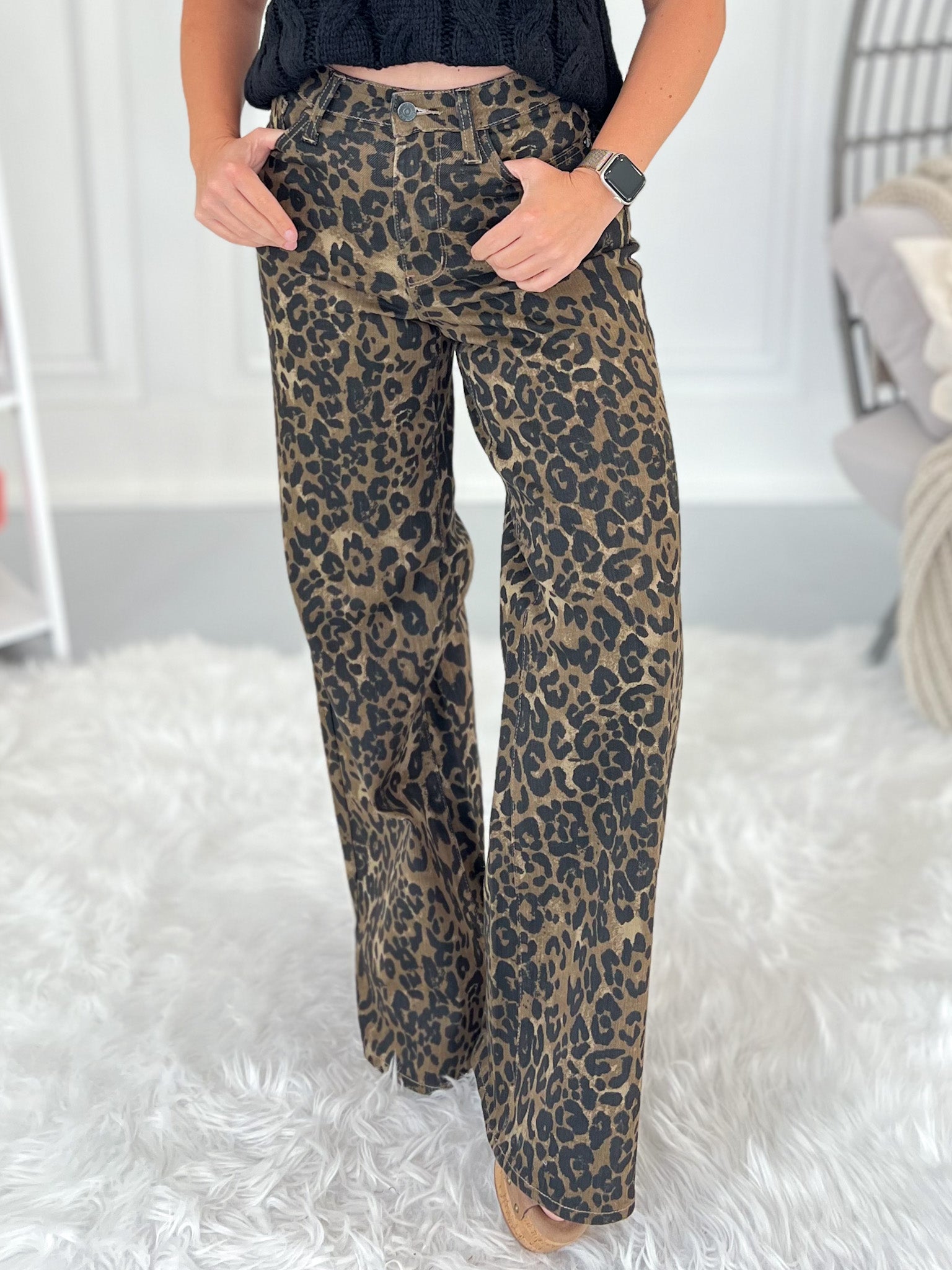 Leopard print just got an upgrade. These limited edition Judy Blue wide leg jeans bring all the bold energy with none of the stiffness in other denim brands—hello stretch! The rich animal print stays vibrant wash after wash, and the retro cut is flattering from every angle. Dress them up or down, rock them to work or a weekend out—they're the definition of fierce and truly are "The Cat's Meow" ;-)