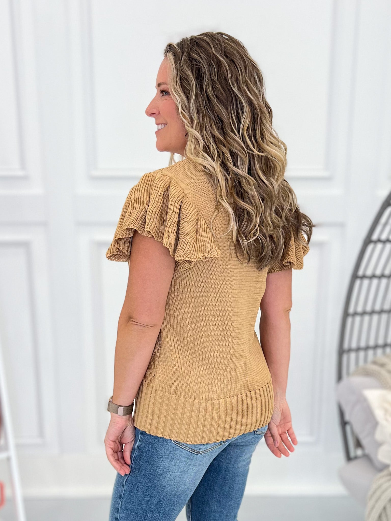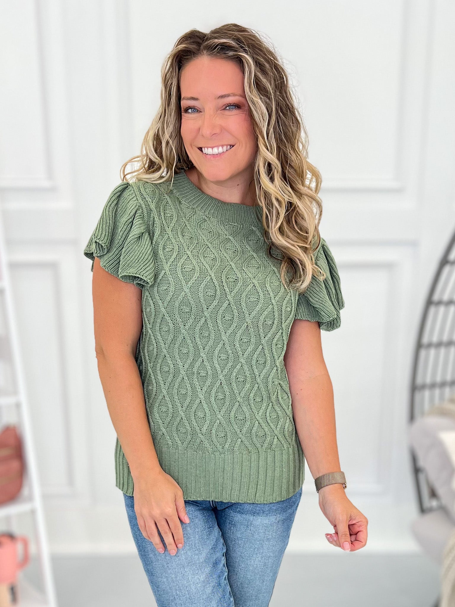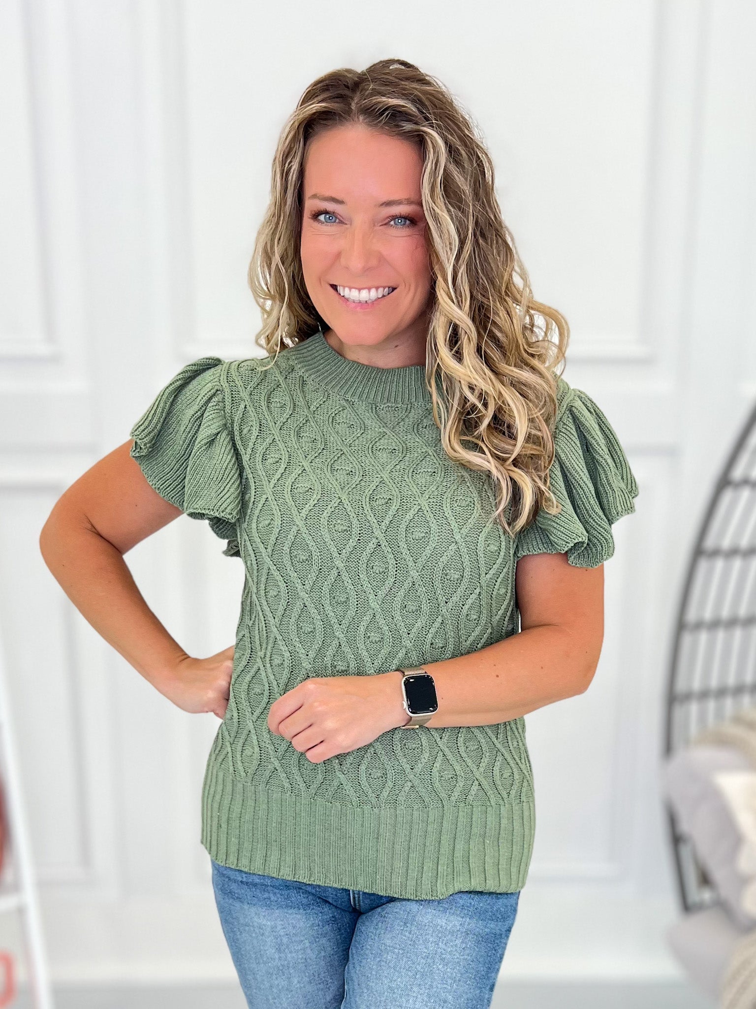 This top is doing everything right—comfy, pretty, and just the right amount of flair. With a soft, stretchy knit and fluttery ruffle sleeves, it’s a year-round essential that looks just as good with denim as it does tucked into a skirt.